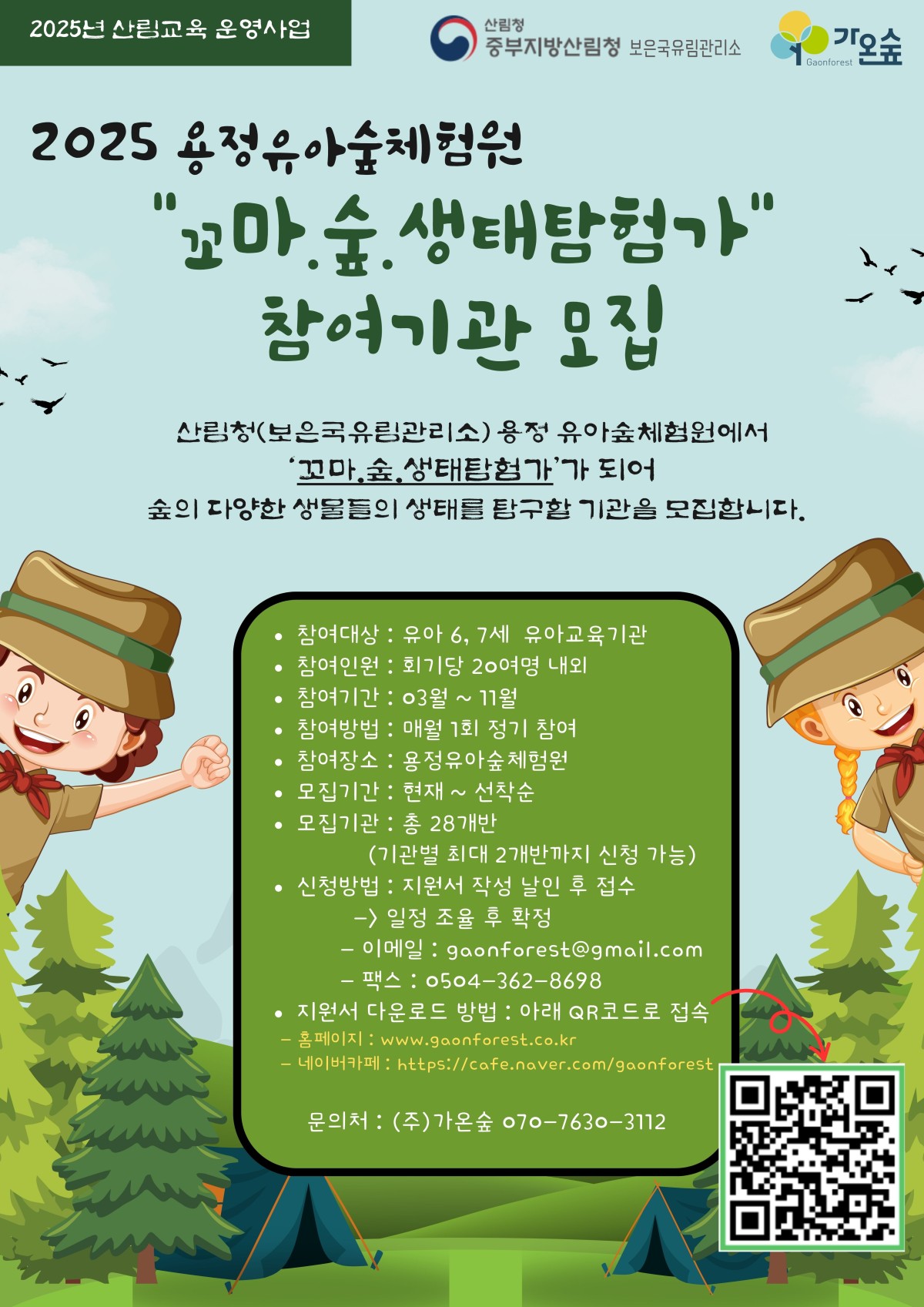 2025년 용정유아숲체험원 "꼬마.숲.생태탐험가" 참여기관 모집(선착순) > 공지사항