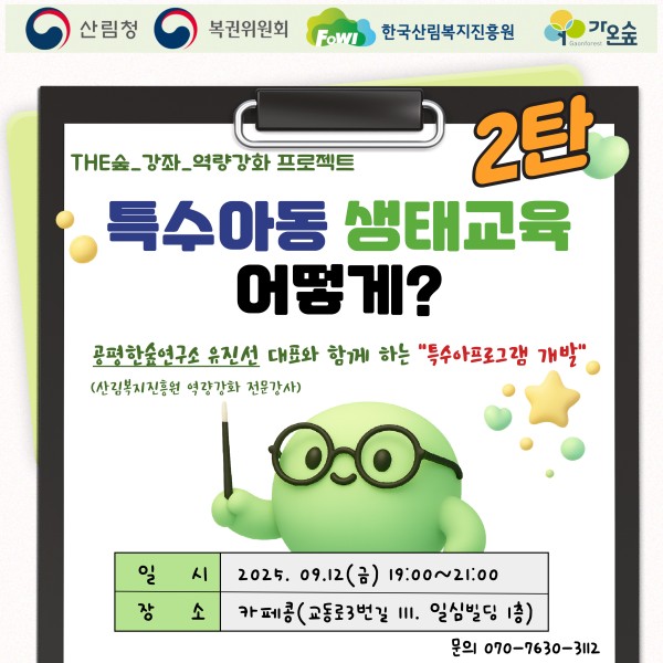 THE숲_강좌_역량강화 프로젝트_ [특수아동 생태교육 어떻게?_2탄] (9/12) > 공지사항